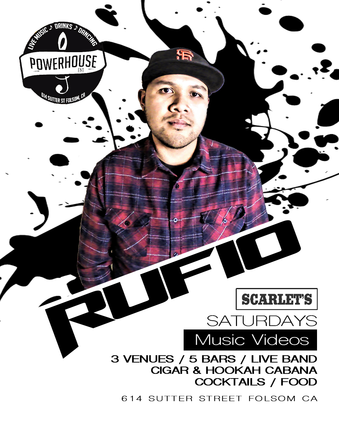 DJ Rufio takes the stage at Scarlets Saloon located inside of Folsom’s Powerhouse Pub. His video mixing residency, along with the local cover band of the night and a secondary dj entertaining the hookah and cigar cabana has brought a capacity crowd every Saturday night. Rain or shine, guests from neighboring cities as well as local regulars pack the Powerhouse Pub in charming Old Folsom. With the most diverse crowd of any local venue, Powerhouse is definitely an enjoyable place to have a drink or five so you can dance the night away.